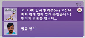 갑자기 화면이 전환되길래 뭔가 했더니 접이 침대에 깔려서 사망했습니다. (..)